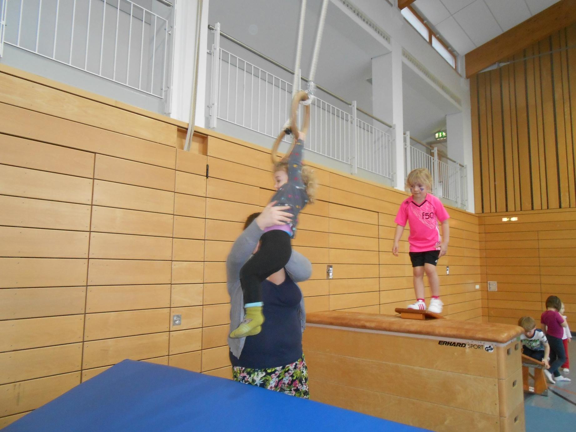 Die Kinder freuen sich auf die Turnstunde, wenn das Wetter toben draußen nicht unbedingt mehr lange zuläßt. Bei verschiedenen Bewegungslandschaften testen sie Ihre Grenzen und können aber selbst bestimmen wie weit sie gehen und was sie machen wollen. Immer mit einer vertrauten Person an Ihrer Seite die Ihnen Halt gibt. Die Begrüßungs- und Verabschiedungsrituale gehören aber genauso zu unserem Programm wie das Auf- und Abbauen.